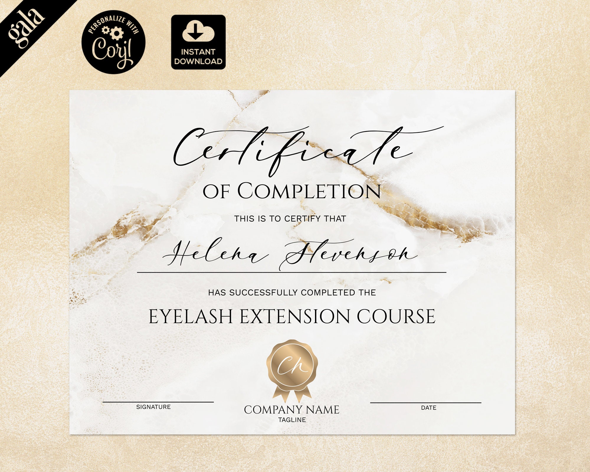 Certificate Of Completion Certificate Template Gold Lashes Etsy Australia